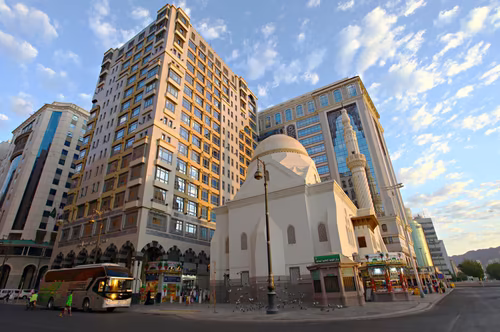 صلاةٌ في مَسجدِها كألفِ صلاةٍ فيما سِواها إلَّا المسجدَ الحرام، وإلَيهِ تُشَدُّ الرِّحالُ وبِجِوارِهِ يحلُو المُقام..