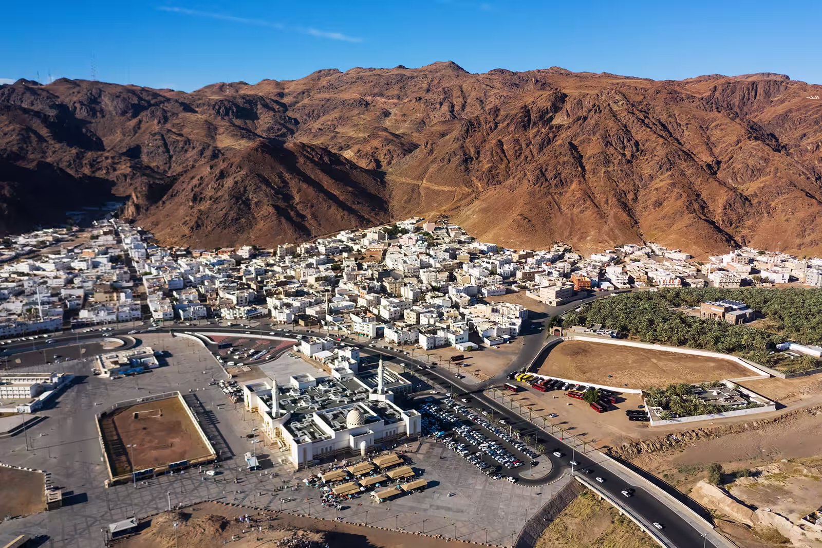 على تُرابِها مَشَى خَيرُ البَشَرِ إيمانًا وعَمَلًا وأتمُّهُمُ اتِّباعًا للهُدى، وأقوَمُهُمْ بالحقِّ النازلِ منْ عندِ الله، رسولُنا وصحبُه الكِرام.